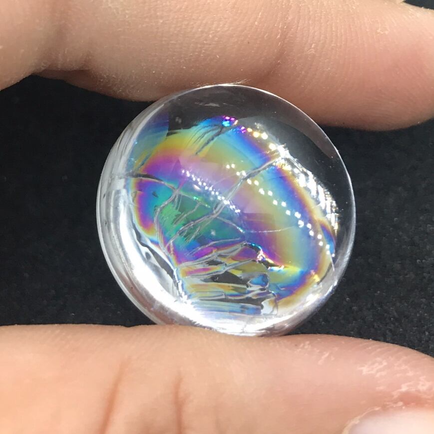 虹がしっかり見えるドーム型カボションカットのイリスクォーツです。お値段頑張ってます!