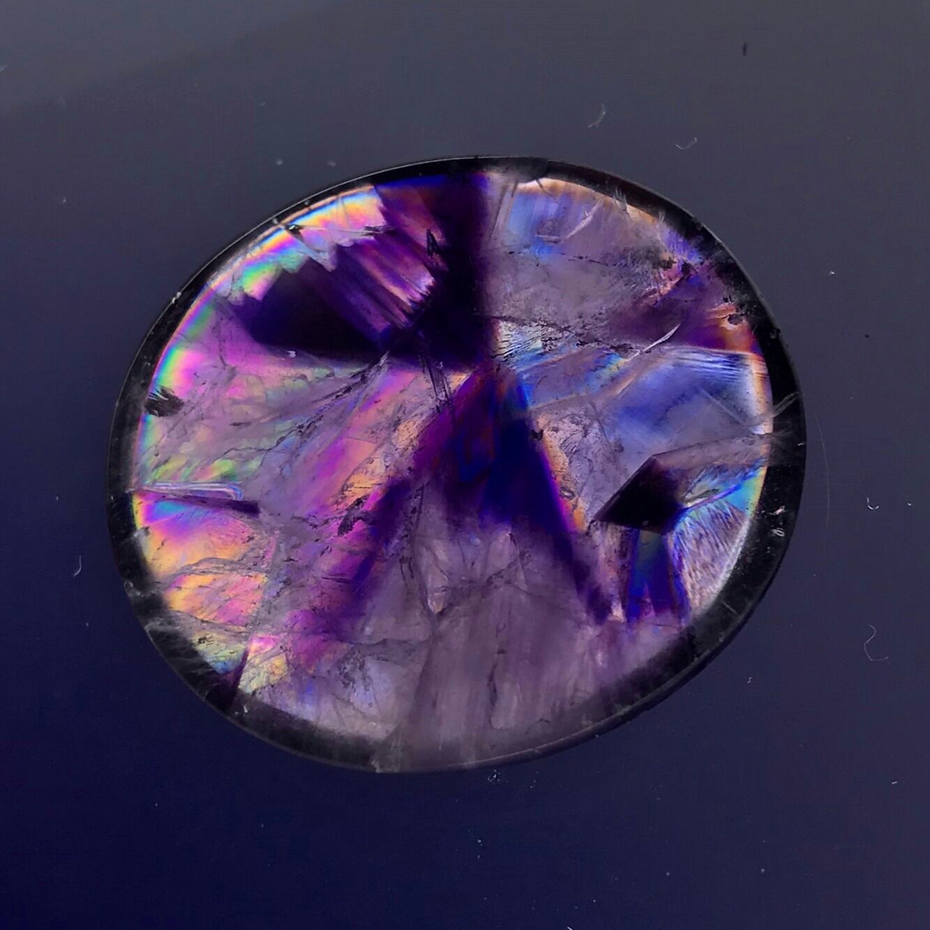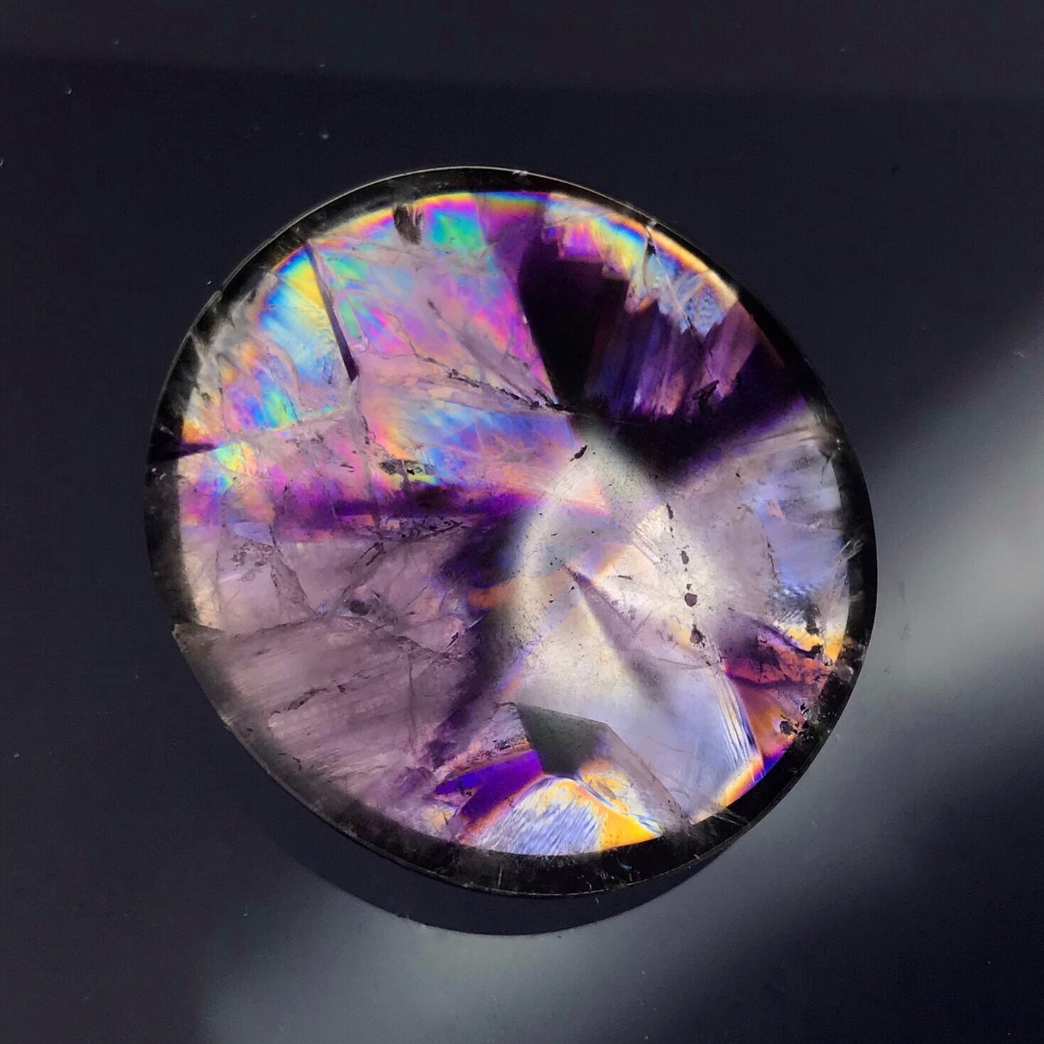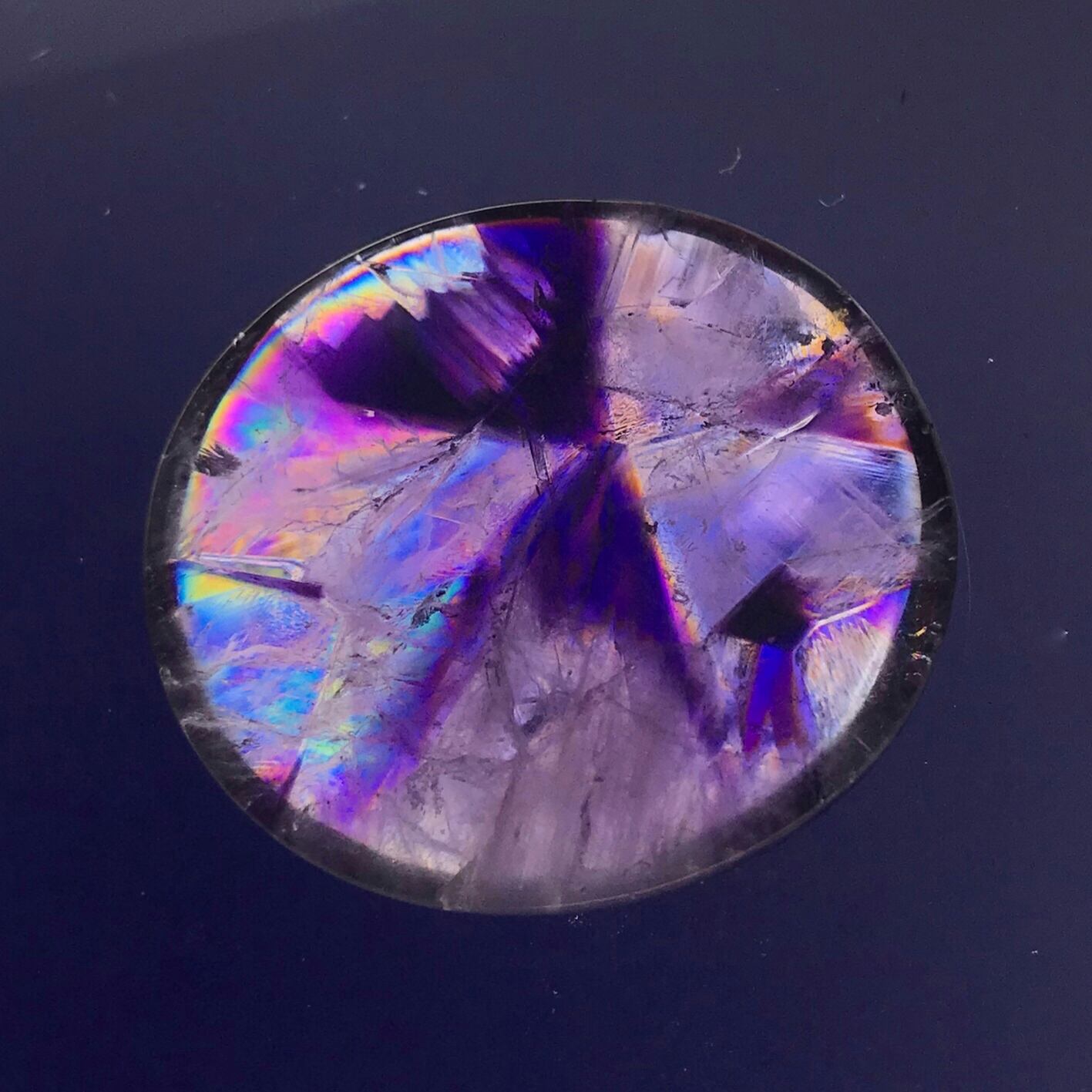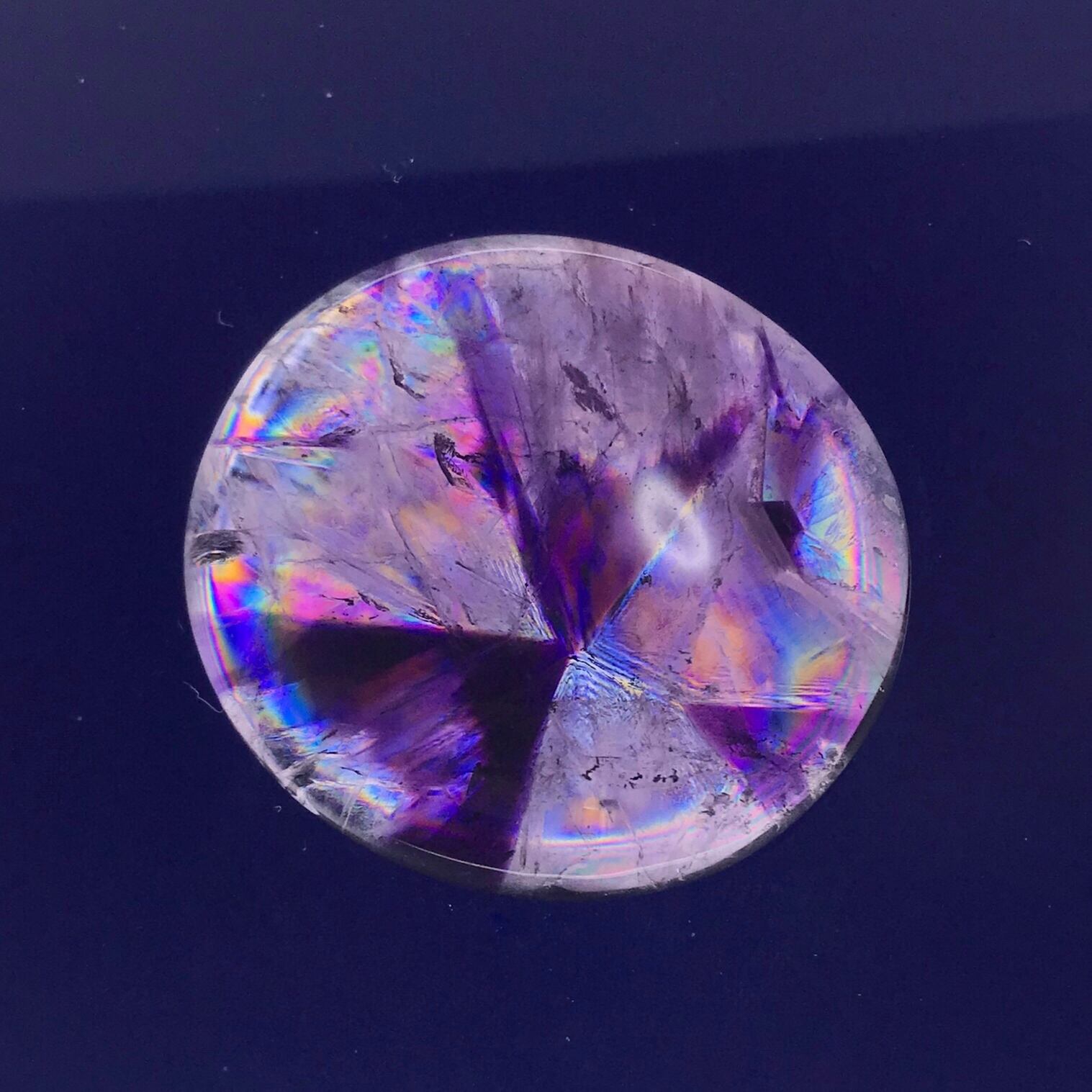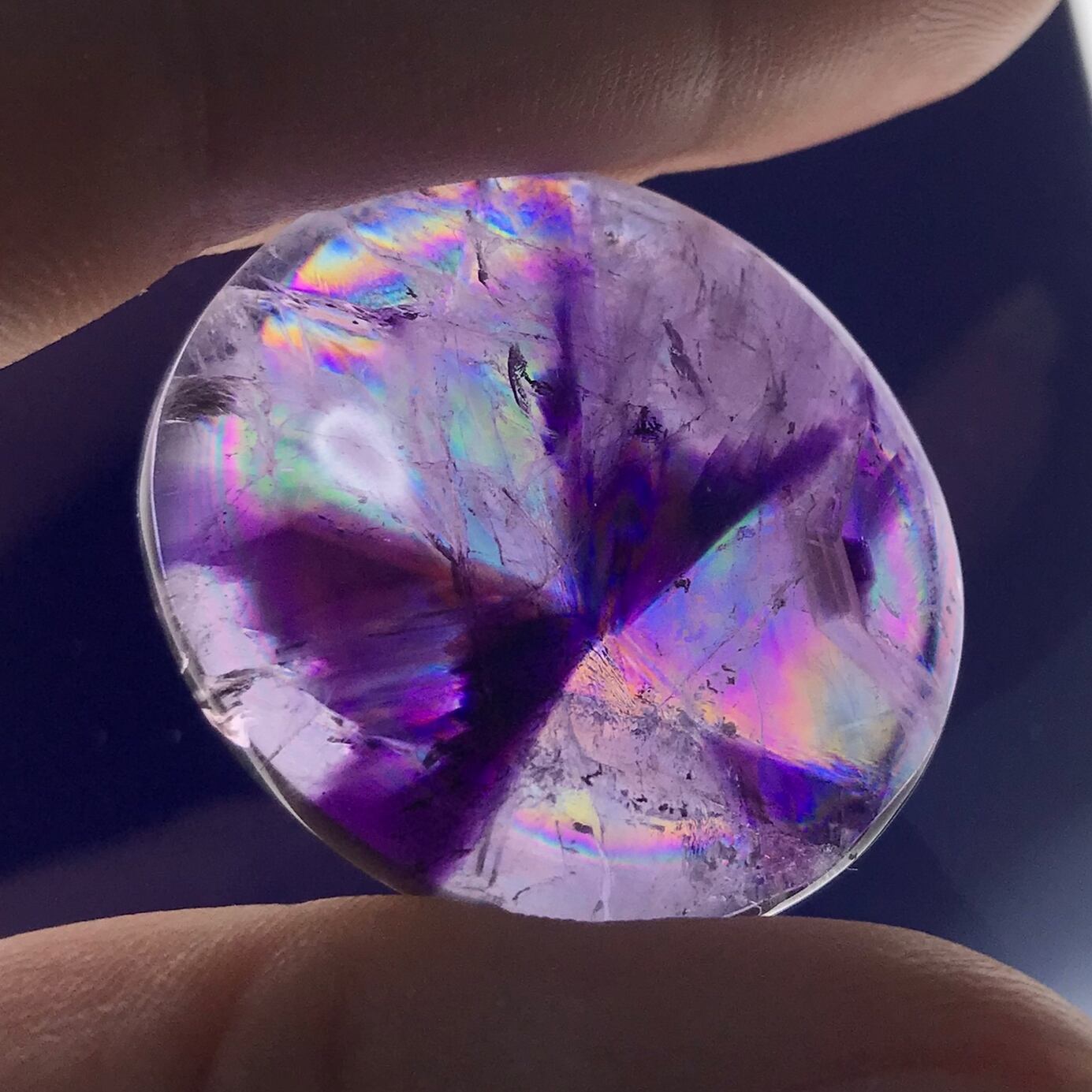 この虹が出るものはコロンビアのトラピッチェクォーツ以外はこのブラジルのトラピッチェアメジストしか知らないとのこと。